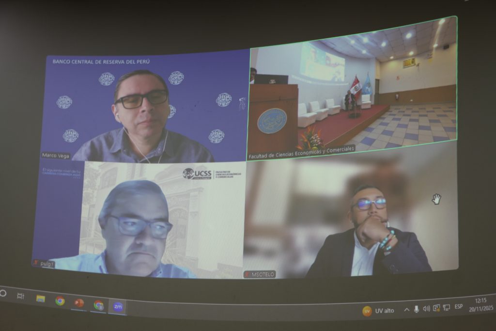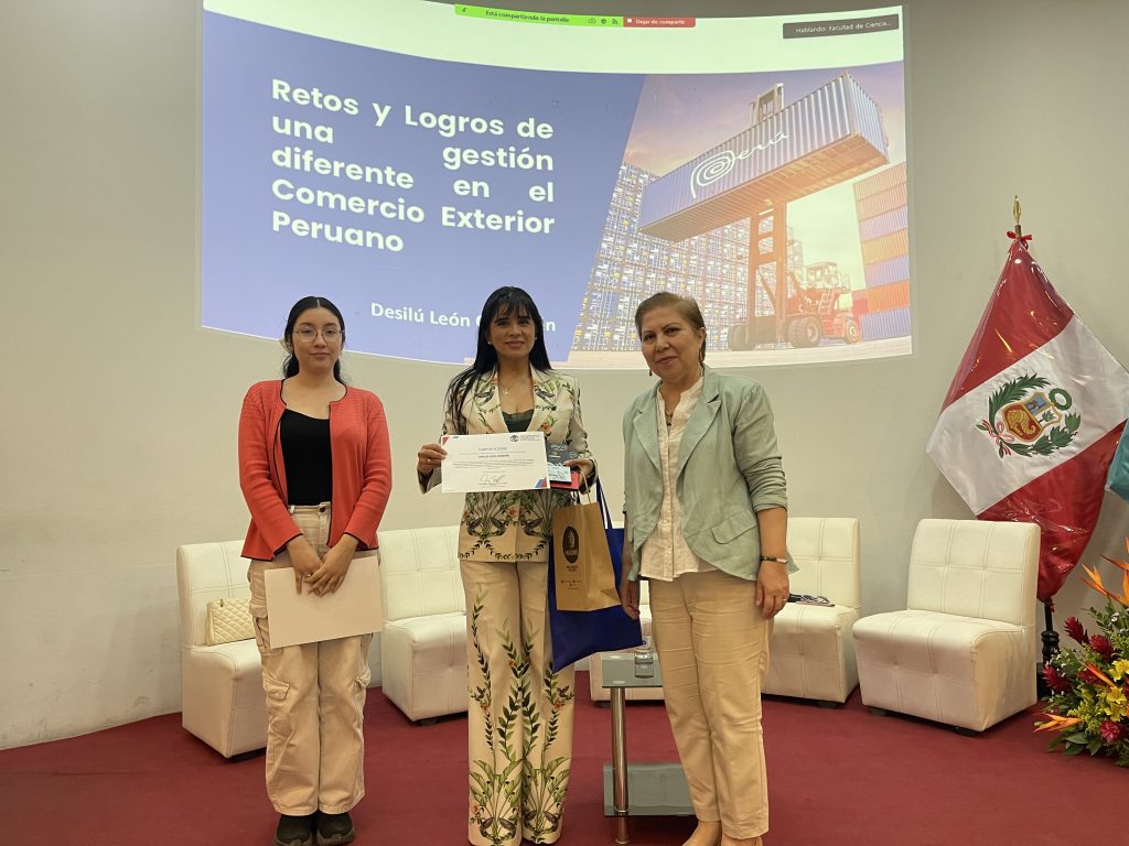 Luego, la exministra Úrsula León Chempén presentó los retos y logros en la gestión del comercio exterior, destacando la necesidad de fortalecer la competitividad de las MYPEs. La jornada continuó con el webinar de Rodrigo del Rosso sobre finanzas y análisis de riesgo mediante herramientas de software libre, dirigido a estudiantes y profesionales interesados en la modelación financiera.