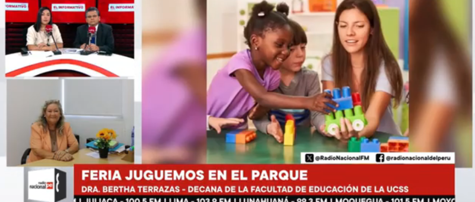 PRENSA. En el marco del 94 aniversario de la Educación Inicial, Radio Nacional PE, entrevistó a Bertha Terrazas, decana de la FCEH. Por Angie Cubas, redacción CampUCSS. El pasado 21 de mayo, Bertha Terrazas, decana de la Facultad de Ciencias de la Educación y Humanidades (FCEH) de la UCSS participó en una entrevista en Radio … Sigue leyendo Decana de la FCEH participó en Radio Nacional promoviendo el evento “Juguemos en el Parque”