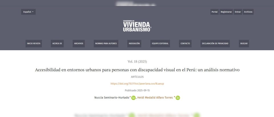El artículo analiza la accesibilidad e inclusión de las personas con discapacidad visual en entornos urbanos de nuestro país. Por: Raúl Ángeles, redacción CampUCSS La Dra. Nuccia Seminario, encargada del Departamento de Investigación de la Facultad de Derecho y Ciencias Políticas (FDCP) de la UCSS, y la alumna Heidi Alfaro, de la misma facultad, publicaron … Sigue leyendo Docente y estudiante UCSS publican artículo en revista indexada en Web of Science