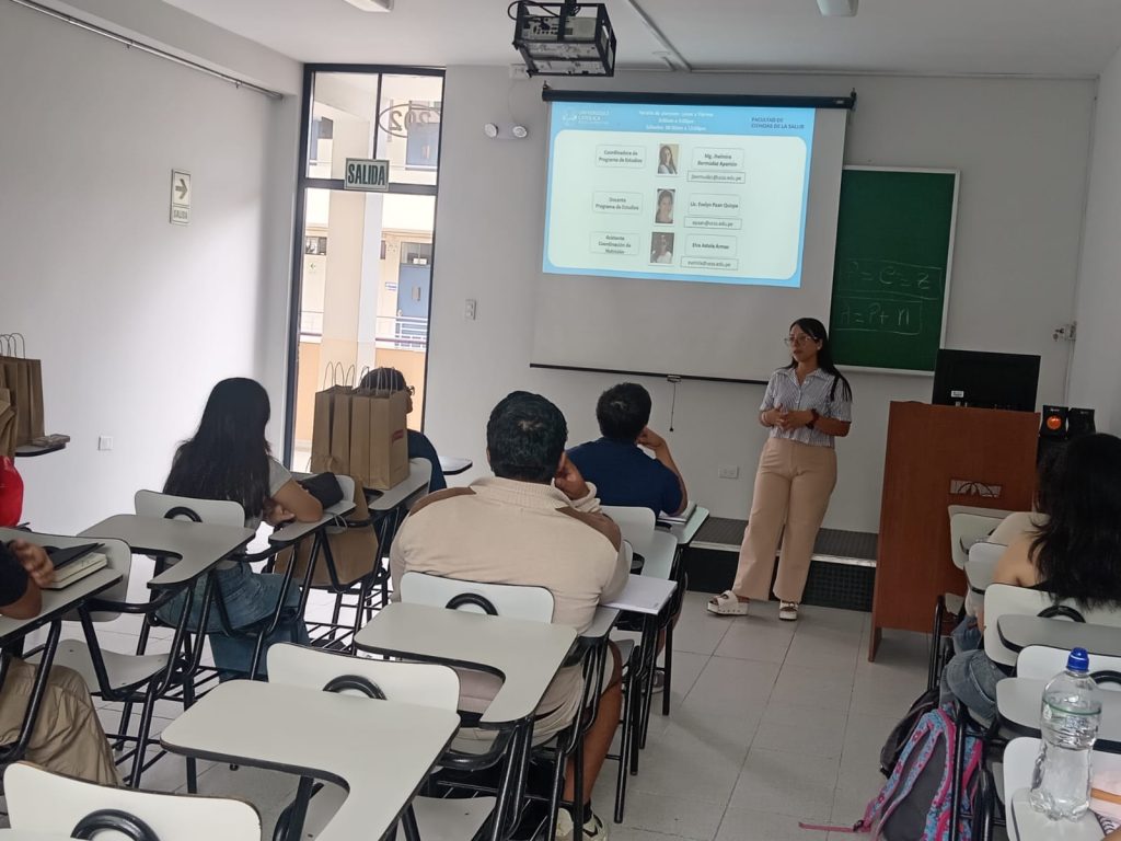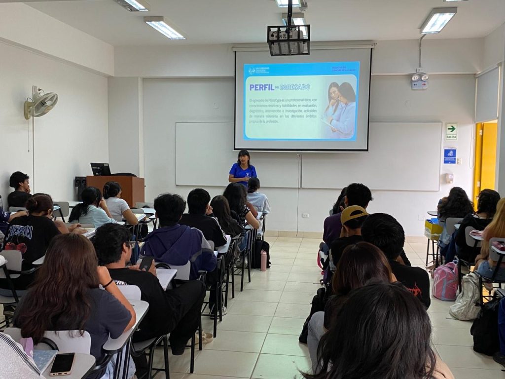 Asimismo, se brindó información relevante sobre el desarrollo de su formación profesional. Se abordaron temas como el plan académico, la ubicación de los espacios de la facultad y los servicios académicos disponibles, los cuales resultan fundamentales para el adecuado desenvolvimiento de los estudiantes en su etapa universitaria. De igual manera, se destacó la importancia del servicio de tutoría como un recurso de acompañamiento permanente, orientado a apoyar a los estudiantes.