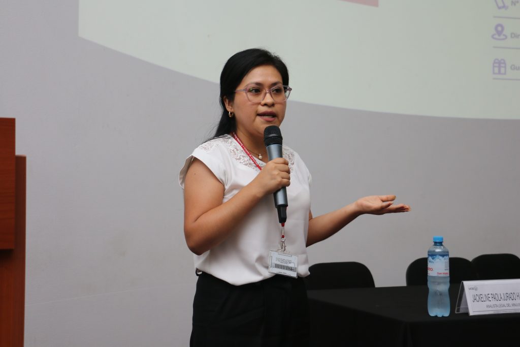 La primera ponencia, titulada “El derecho fundamental de Protección de Datos Personales”, estuvo a cargo de Jackeline Jurado, analista legal de Procedimientos Trilaterales de Tutela en la Dirección de Protección de Datos Personales del MINJUSDH. En su exposición, abordó la relevancia de garantizar la privacidad de la información en un contexto digital en constante evolución.