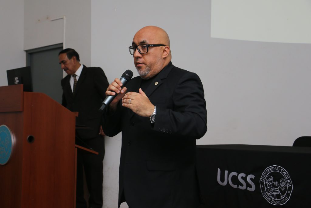 La jornada inició con las palabras de bienvenida del decano de la FDCP, Dr. Edgar Cruz, quien destacó la importancia de estos espacios de reflexión sobre los desafíos actuales del sistema jurídico. Seguidamente, el Director General del Centro de Estudios en Justicia y Derechos Humanos del Ministerio de Justicia y Derechos Humanos (MINJUSDH), Dr. César Correa, ofreció las palabras de inauguración, en representación de la cartera ministerial y saludando la presencia de los asistentes.