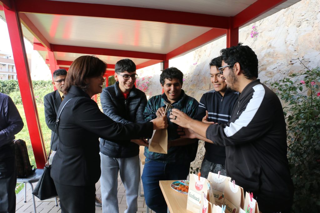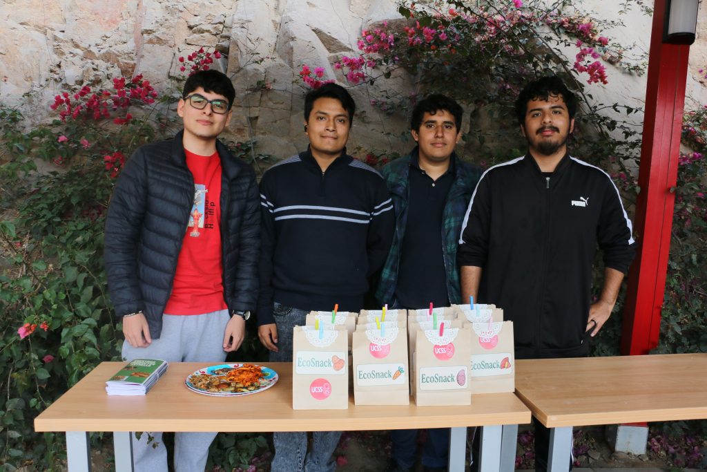 Por su parte, el proyecto Eco Snack destacó por su propuesta de aprovechamiento de cáscaras de distintos tubérculos para elaborar un snack saludable y económico. El proceso consiste en hervir y hornear las cáscaras, obteniendo un producto con agradable sabor, comercializado a 2.50 soles.