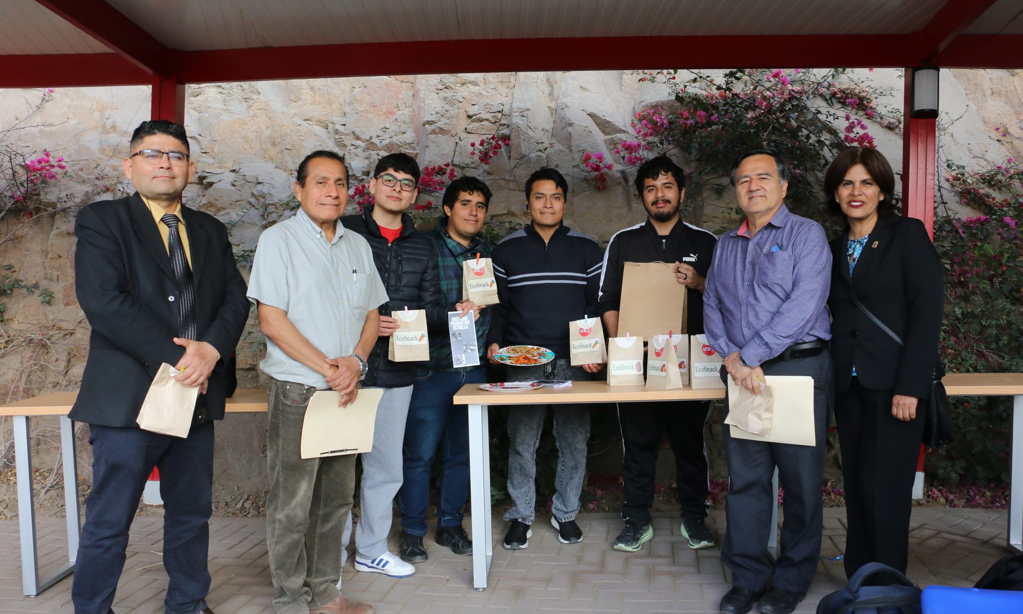 El jurado estuvo conformado por el Ing. Roger Ucañan, coordinador académico del programa de Ingeniería Industrial, junto con el Ing. José Zapata. En dicho evento también estuvieron presentes la Ing. Flor Román y el Ing. Eberth Vásquez. Tras la evaluación, el proyecto Eco Snack fue reconocido como el ganador por su innovación, practicidad y contribución al cuidado ambiental.
