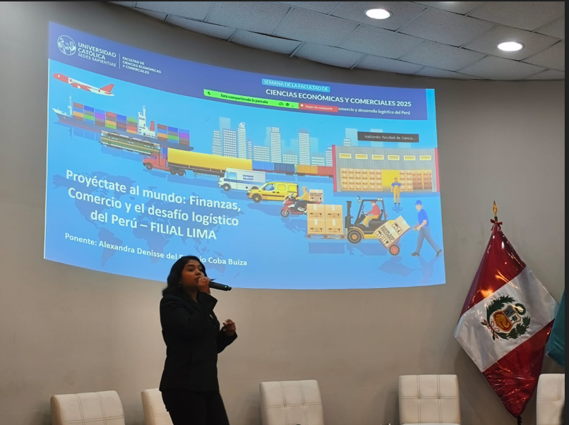 Los días 20 y 21 de noviembre tuve el honor de representar a la Sede Lima de la Universidad Católica Sedes Sapientiae (UCSS) como ponente en la Semana de la Facultad de Ciencias Económicas y Comerciales 2025, en el marco del evento académico “Proyéctate al mundo: Finanzas, comercio y desarrollo logístico del Perú”, organizado por nuestra casa de estudios.