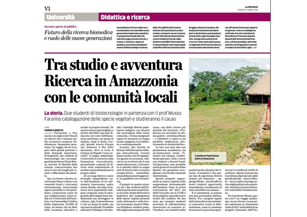 Dos estudiantes de biotecnología de la Universidad de Insubria (Italia) realizarán una estancia de investigación en la Amazonía peruana gracias a la colaboración académica con la Universidad Católica Sedes Sapientiae (UCSS), reafirmando el compromiso institucional con el desarrollo científico y el trabajo articulado con comunidades locales.