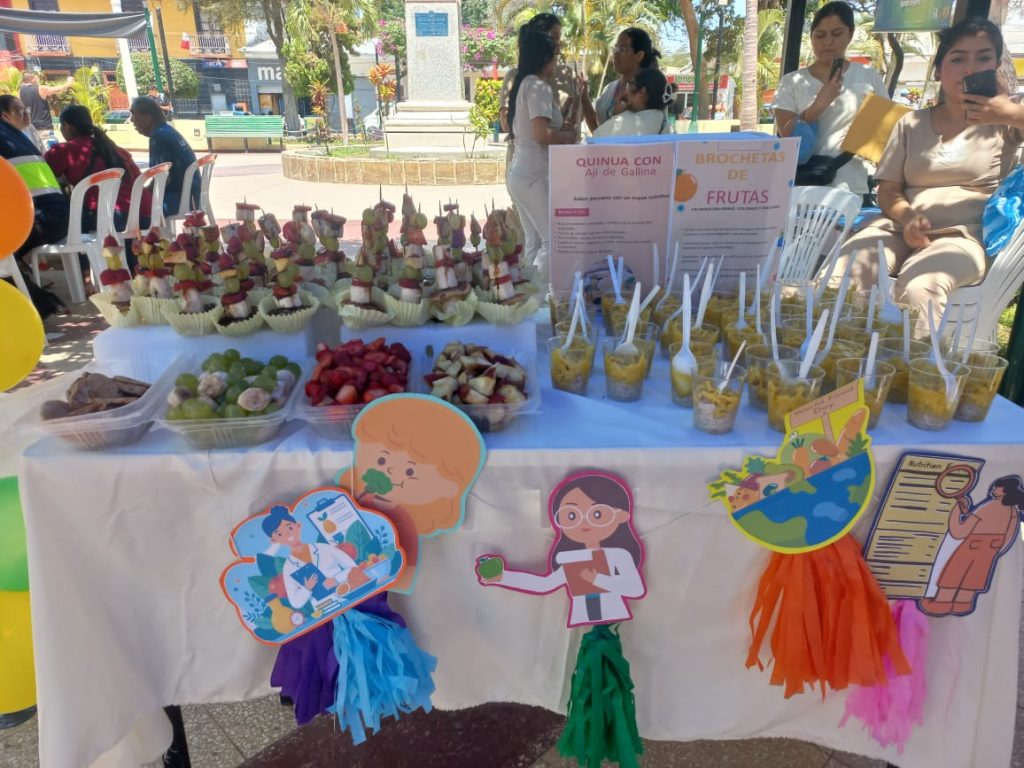 Ese mismo día, se llevó a cabo una feria educativa en la Plaza de Armas de Chulucanas, abierta al público y con la participación de docentes, estudiantes y población en general. En esta jornada se realizaron actividades de antropometría, consejería nutricional, degustación de alimentos y talleres educativos sobre alimentación saludable. La organización estuvo a cargo de los alumnos del V y VII ciclo del programa de Nutrición y Dietética, quienes pusieron en práctica sus conocimientos al servicio de la comunidad.